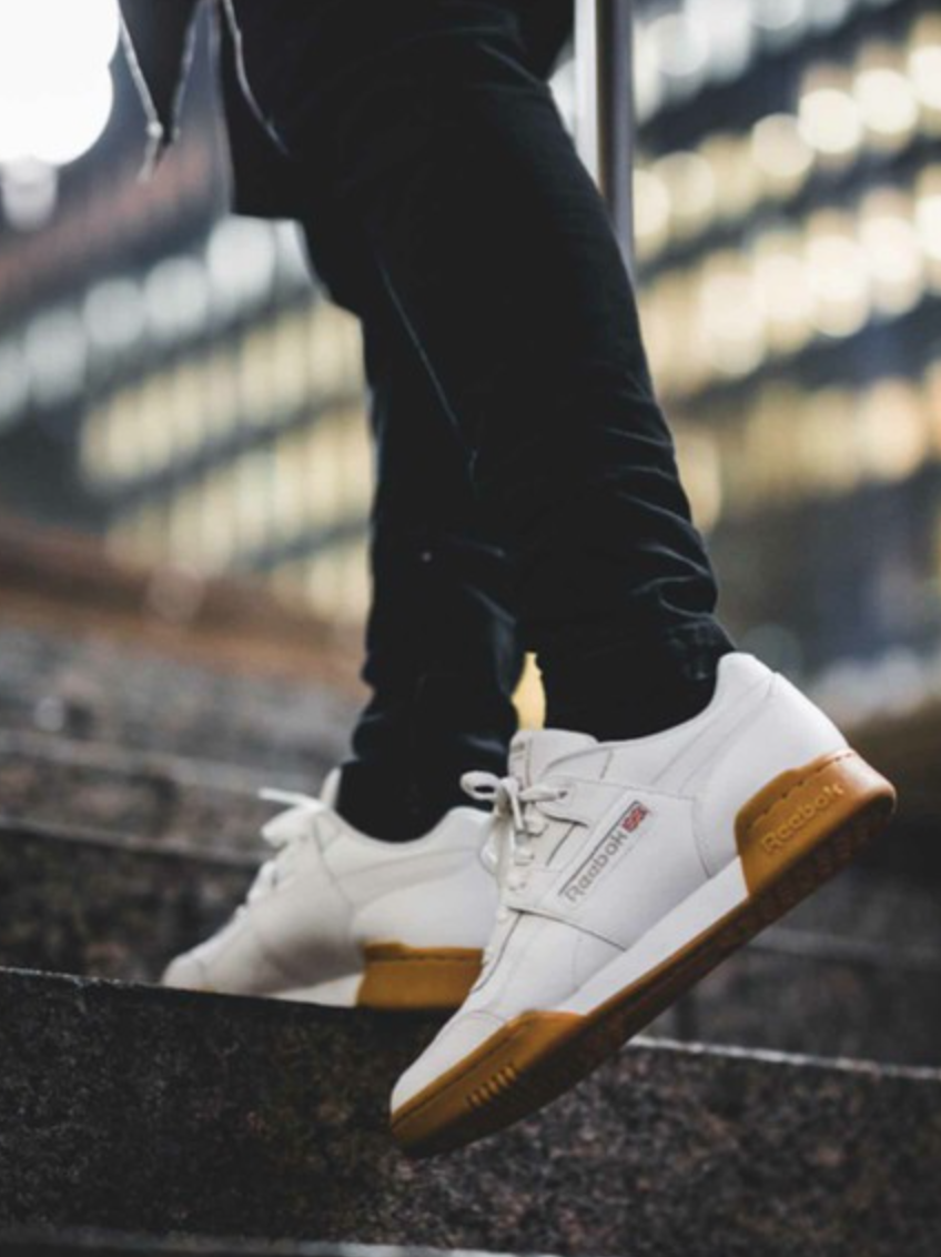 色違いに、真っ白でリーボックの文字がブルーのモデルがありますが、個人的にはガムソール(茶色の靴底)がレトロな感じでオススメ!