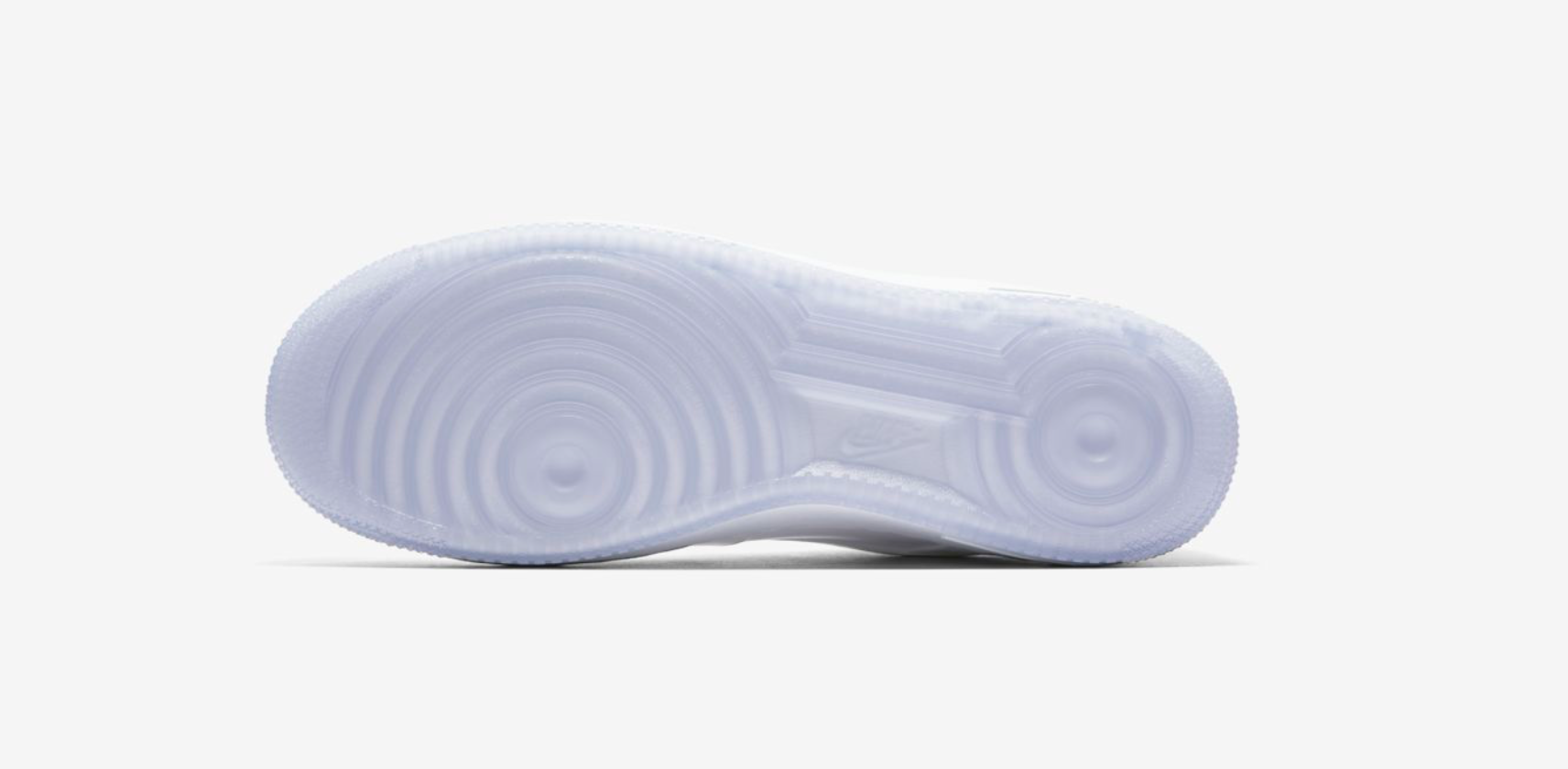 素材がパールのような光沢のある合成皮革でできており、通常のエアフォース1とは違いシームレス(縫い目がない)構造になっています。