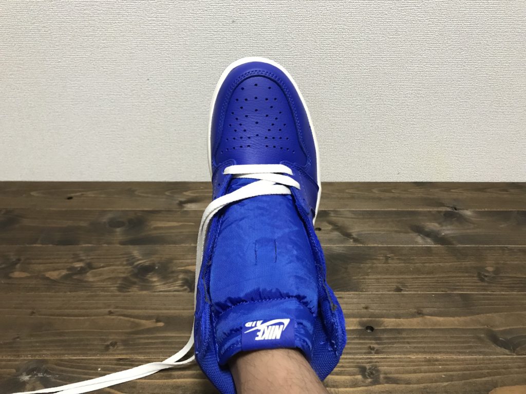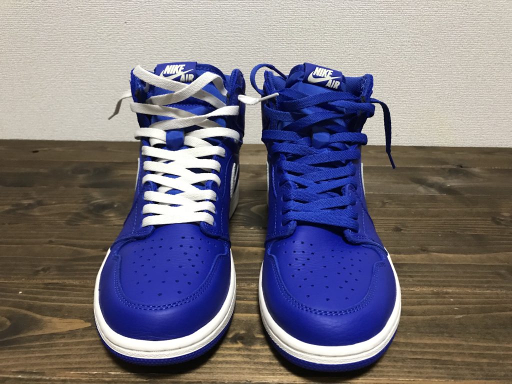 ジョーダン1は紐が結ばれた状態じゃないので、この紐も通していく作業がたまらなく好きです。