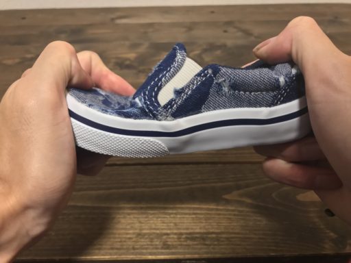 あと、割とソールが硬くあんまり曲がらないため、歩き始めのお子様にはつまずきの原因になる恐れがあります。