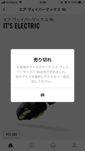 今回はナイキスニーカーズにて、ヴェイパーマックス95 ボルト購入に挑戦した結果報告と、その後の二次流通事情をお伝えしていこうと思います。