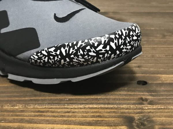つま先部分は、ジョーダン3のセメント柄と同じような位置に柄が入っています。