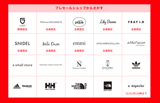メンズ・ウィメンズ・キッズの様々なブランドが参加予定です。
