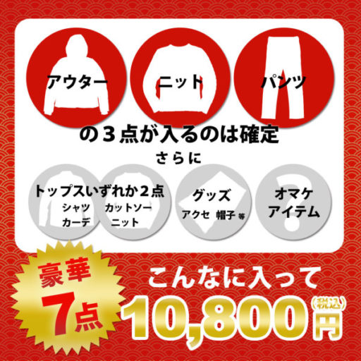 アウター、ニット、パンツ他、合計7点が入って¥10,800(税込)!