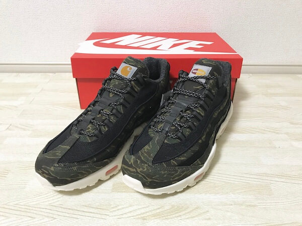 今回は、先日購入した”ナイキ エアマックス95×カーハートWIP”が届きましたので、サイズ感や履き心地など、詳しくレビューさせていただこうと思います。