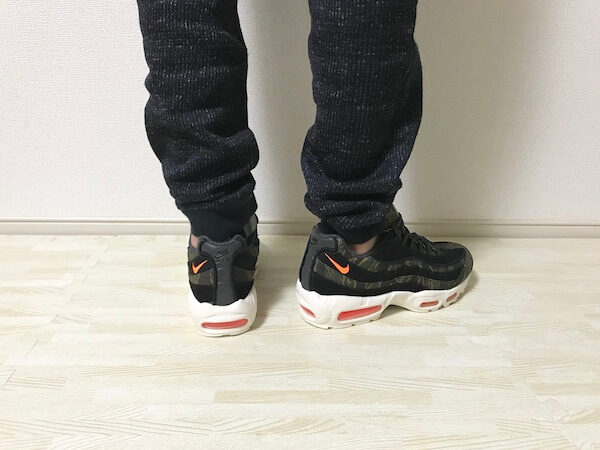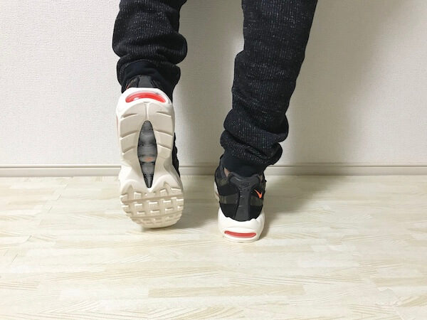 履き心地は、素材がナイロン等を使われていますが、特にこれまでのエアマックス95と変わりありません。
