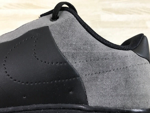 シューホール部分からヒール部分にかけて、グレーのパターン切り替えしがあり、