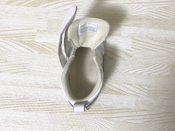 歩き始めの頃の赤ちゃんは、まだ足首も太く、なおかつ履かせる時じっとしてくれないので、履き口が大きいのは助かります。