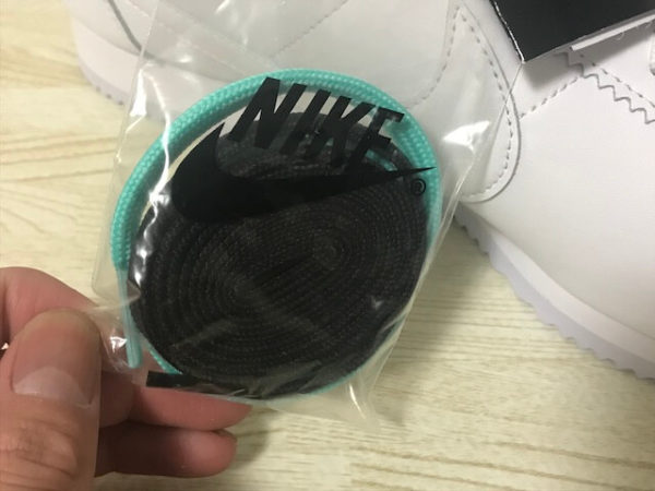 今回初めから通してあるホワイトの紐に加え、ブラックとターコイズブルーの変え紐が付いていました。